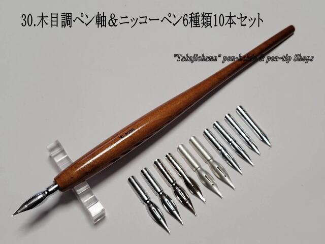*木製ペン軸とそれぞれの特徴をそなえた6種類のペン先、用途に応じての書き味をお楽しみいただけます
