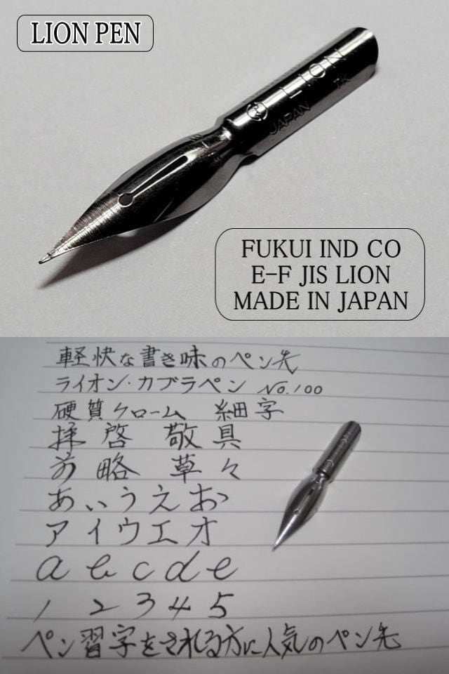ペン先刻印:FUKUI IND CO E-F JIS LION MADE IN JAPAN