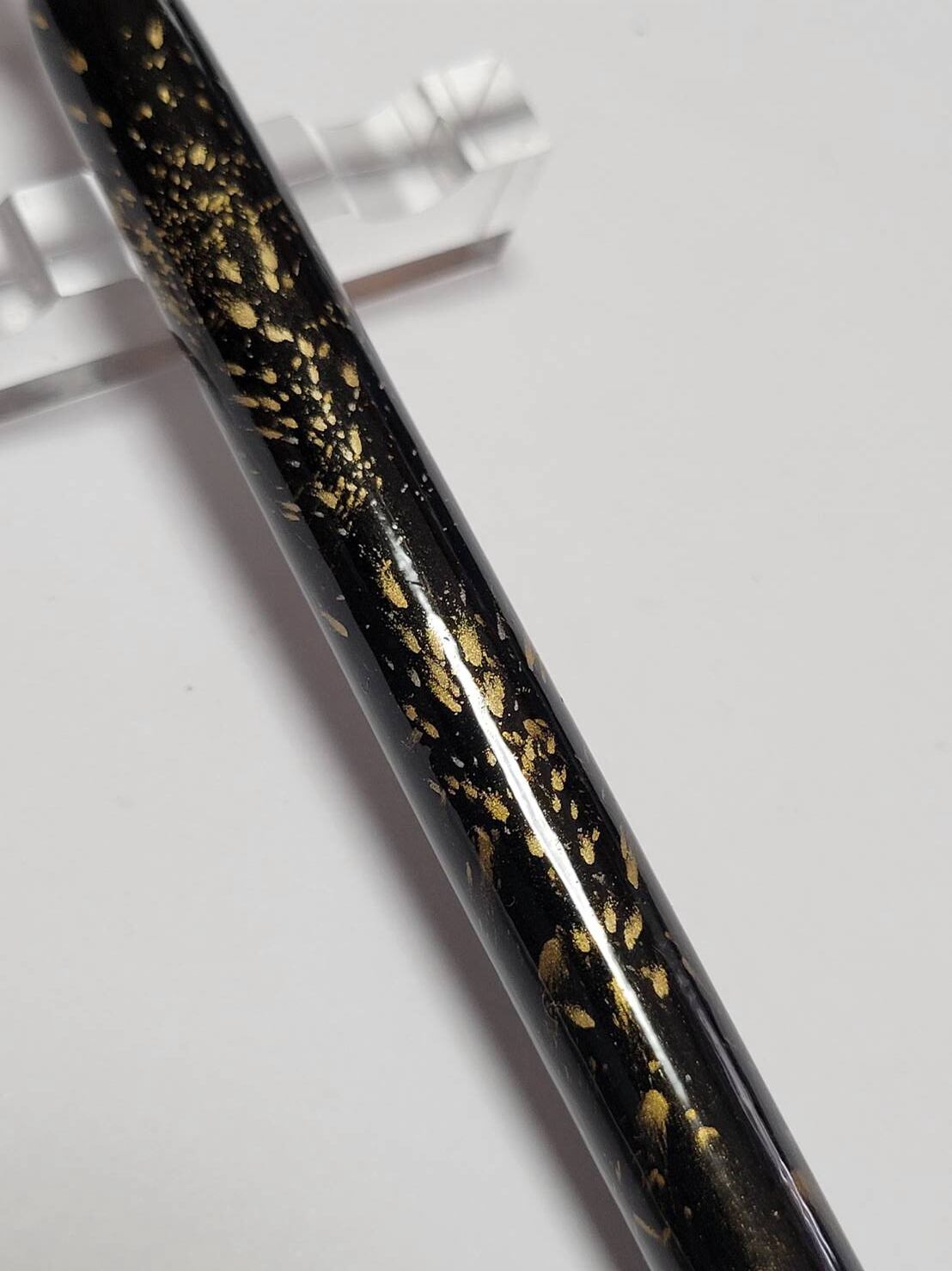 ◆ショップオリジナルの「金粉散し模様」が彩られた漆の肌触りが伝わる金彩を施した漆塗り仕上げのペン軸です。